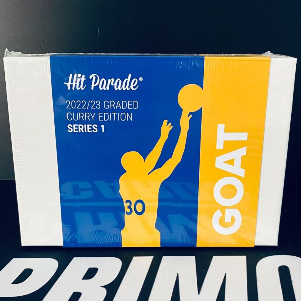 Products  1x 2022/23 Hit Parade GOAT Curry Graded Edition Series 1 Hobby Box – Stephen Curry Every box contains one (1) Graded Curry card! Only 100 hand numbered boxes produced! 2022/23 Hit Parade GOAT Curry Graded Edition – Series 1 is headlined by: * 2009 Topps Rookie PSA 8 * 2017 Panini Select Zebra Prizm PSA 10 * 2009 SP Game Used Rookie /399 PSA 9   Each box contains ONE (1) card that’s either protected by a one-touch or a graded slab from PSA or Beckett. What’s included? Low numbered autographs, graded non-auto rookies, Case Hits, dual, triple, and booklet autographs, 1 of 1’s, PSA or Beckett graded autographs, and PSA or Beckett graded rookies! Only 100 hand numbered boxes produced!